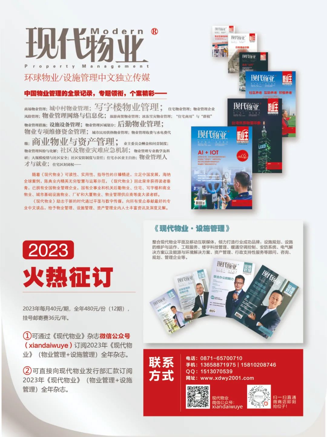本文为《现代物业》杂志版权所有,如需转载,请联系本微信号后台管理员或xdwy200175@126.com,转载请务必注明出处。