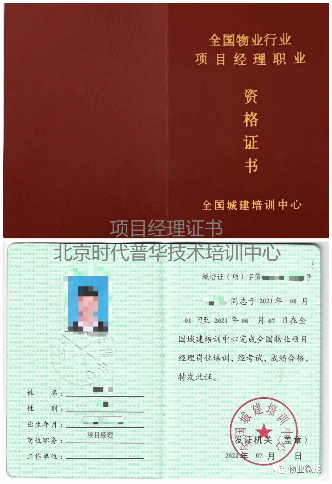一物业培训取证建设部指定颁发机构全国城建培训中心颁发招标资质、 注册物业公司、 个人上岗、升职加薪等均可报考。证书查询地址全国城建培训中心官网http://www.cjpx.com.cn一、证书类型1、全国物业企业经理证(岗位证)2、全国物业项目经理证二、培训及办证对象全国物业管理从业人员,各物业服务企业。三、证书作用1、有效证明个人具备从事物业管理工作或胜任相应工作岗位的资格;2、有效证明物业服务企业或个人具备从事物业管理服务工作的能力和水平;3、系个人求职、应聘、职场提升,以及企业聘用、提拔的依据;4、系物业服务企业拓展项目、参加招投标等经营活动的必备证书。四、培训内容网络授课视频、根据单位或个人实际需要设置。五、证书样本全国城建培训中心资格证书1、全国物业企业经理证书(物业经理)一般适合物业公司的总经理、副总经理、分公司经理、部门经理或副经理等物业管理从业人员及优秀员工。2、全国物业项目经理(项目经理)一般适合具体管理某个物业项目的经理、副经理、部门经理等物业管理从业人员及优秀员工。申报证书,请扫描下面二维码或咨询热线:18510477133 石老师(微信同号)
