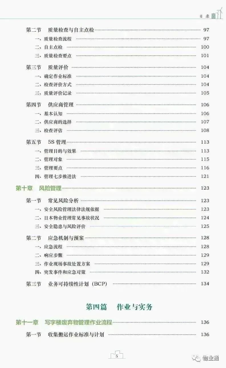手册》将在系统分析与梳理日本废弃物管理体系与方法以及日本废弃物管理的发展历程的基础上,针对写字楼的特点,涵盖写字楼废弃物管理规划的制定、租户沟通与管理、废弃物投放与存放场地/容器/人员/设备与器具等的规划、投放/收集/搬运/分拣/计量/清运的作业流程、餐饮/商业/装修等垃圾的管理、劳动安全卫生以及质量管理/5S管理等方面的内容。此外还将介绍废弃物管理的相关法律法规以及LEED等国际认证之间的关系等内容,具体目录如下所示。