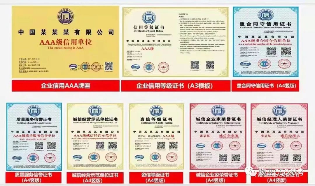 AAA信用等级证书ISO三体系认证证书企业服务资质证书