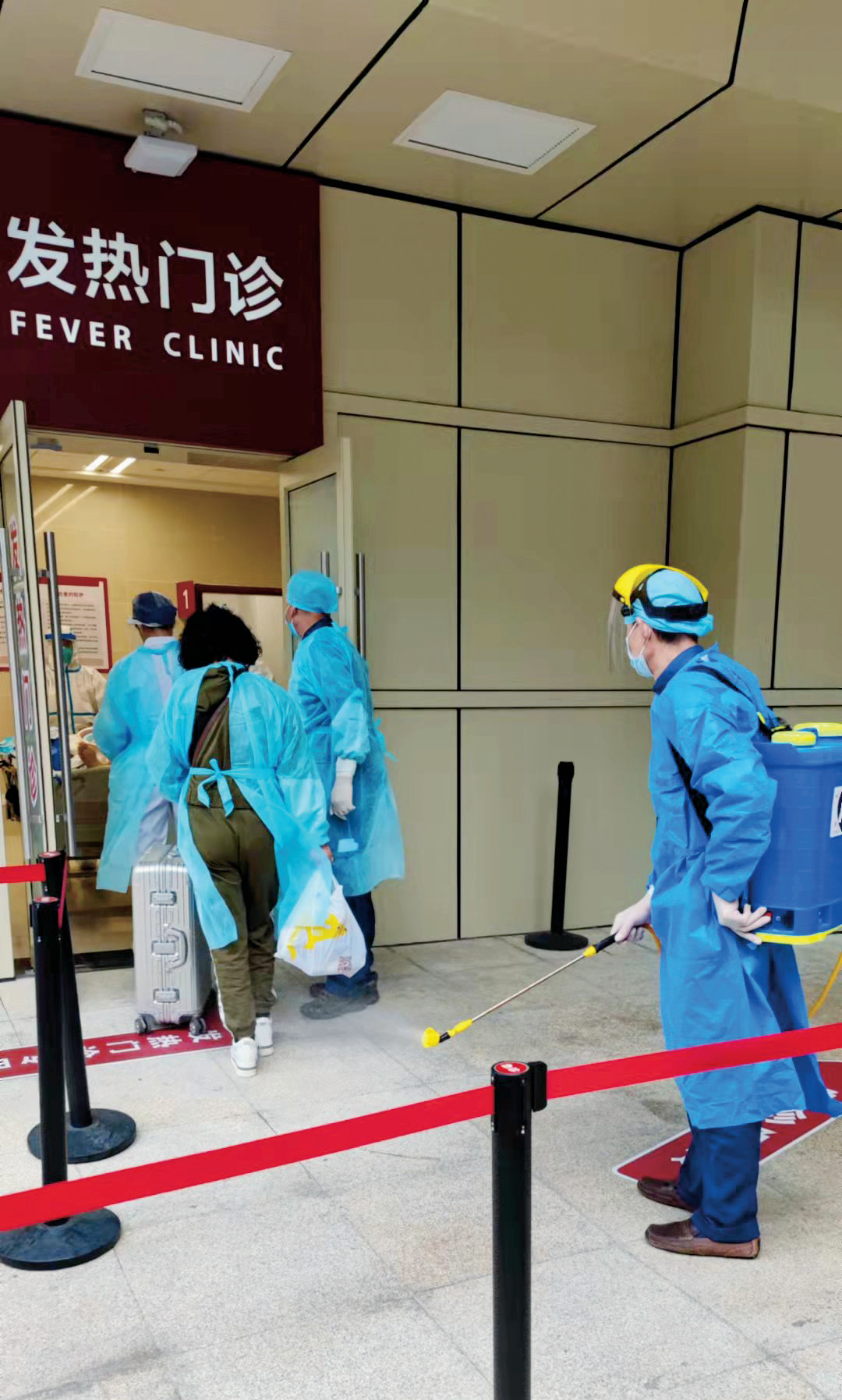 保洁团队对医院的不同区域进行了划分,包括:病区公共区域、办公区、休息区等普通区域;病区室内、核酸检测点、医废垃圾收集环节等重点区域;发热门诊、感染病区等特殊区域。根据区域的不同,设计了不同的消毒标准和频次。对于特殊区域,使用2,000mg/L的高浓度消毒液进行早中晚三次高频消毒。同时,对特殊区域的保洁人员也做好了严格的防护措施,相关人员工作时都穿着工作服、隔离衣,戴工作帽和医用防护口罩,必要时戴乳胶手套。